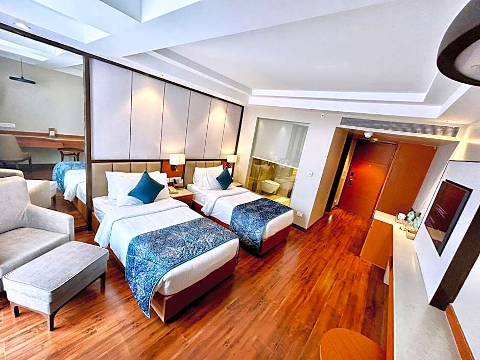 The spacious suite offers air conditioning, a mini-bar, a tea and coffee maker, a seating area, as well as a flat-screen TV with satellite channels. The unit offers 2 beds.